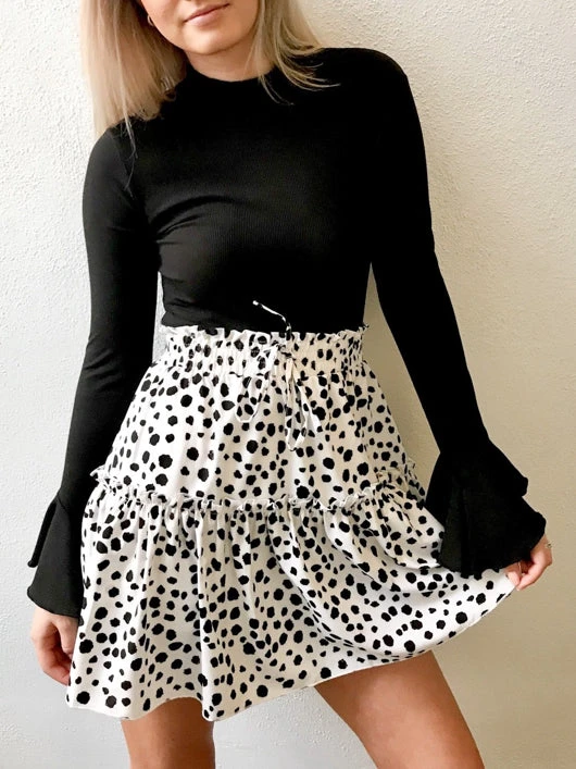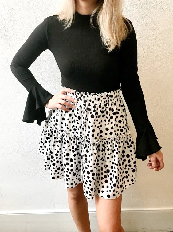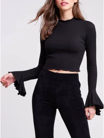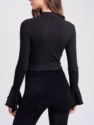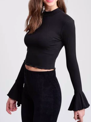 Enjoy the magic in this fitted top with flared bell sleeves! The ruffles add just the perfect detail to this classic black top. Dress up or down depending on the occasion, but look just as magical either way!