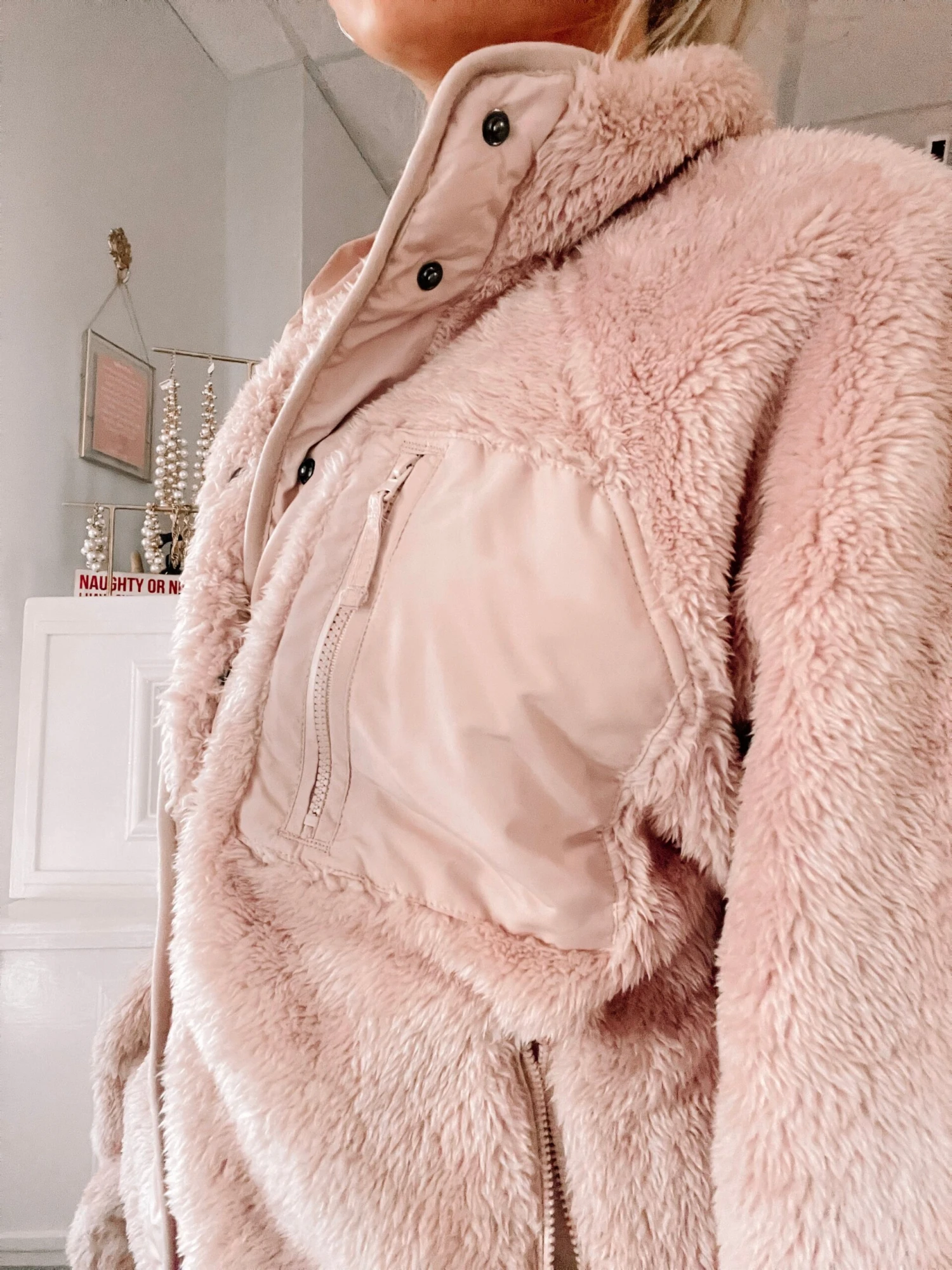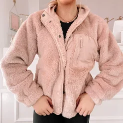 Our Felice Blush Pink Jacket is a super soft faux fur pretty with pockets.Â