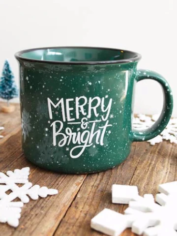 Prepare yourself for this holiday season with this “Merry & Bright” campfire mug! Fill with coffee, hot chocolate, eggnog, apple cider, or your drink of choice! Whatever you choose, this mug will make it taste better!Â