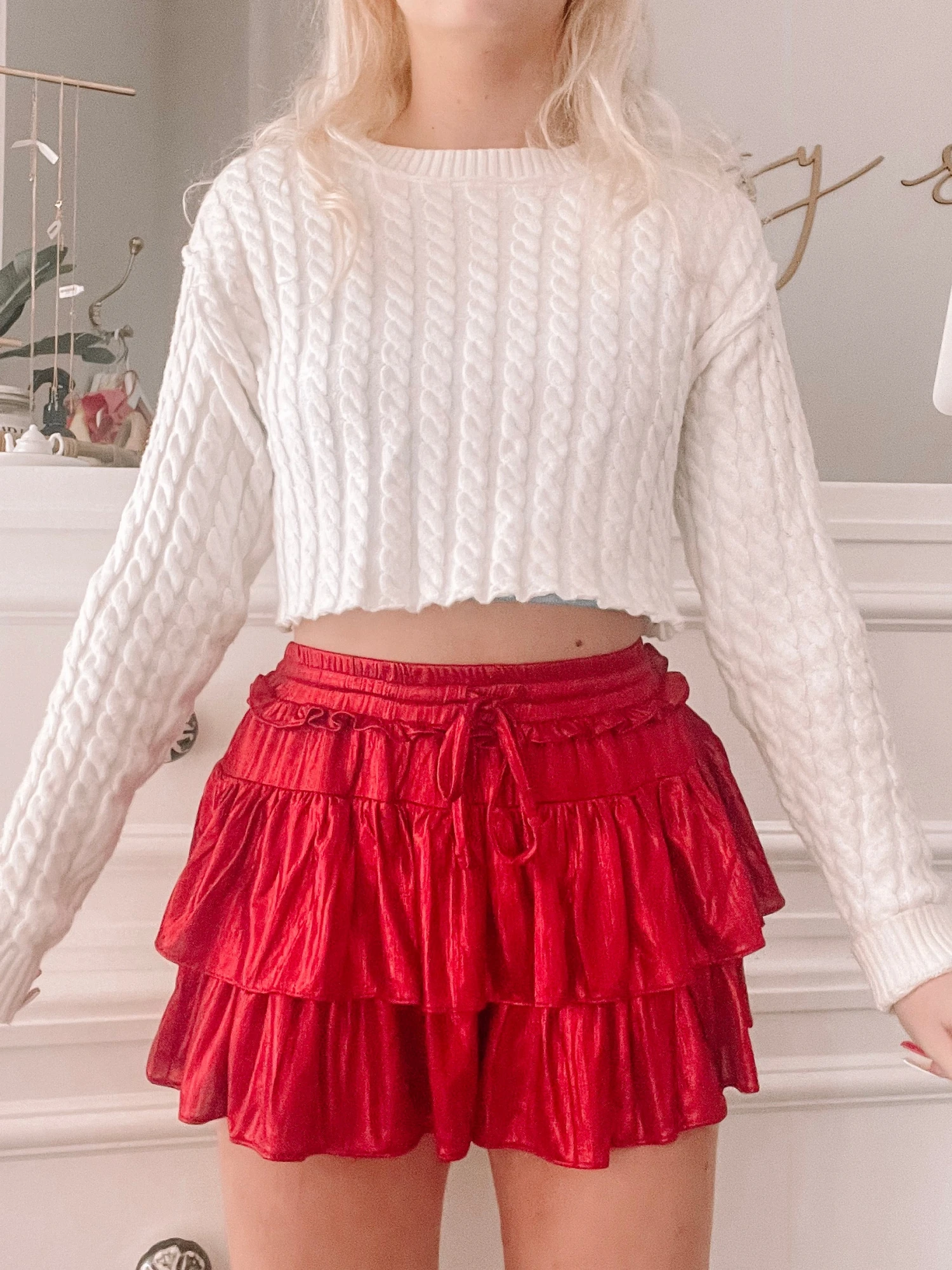 Flirtatious Shimmer Skirt | Red