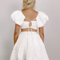 Our White Julia Ruffle Top features lightweight fabric and shows off a lovely ruffle shoulder detail along with a square neckline. She also has tie bow back and elastic around the top of chest to keep in place. Also available in orchid.