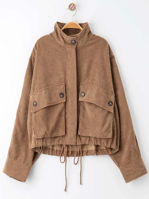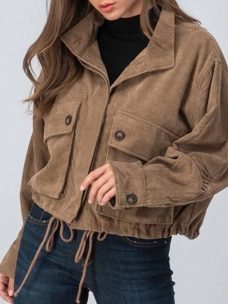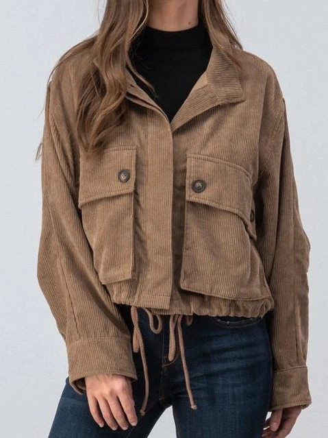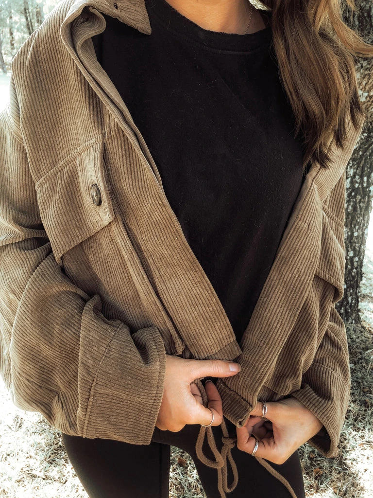 You will be Overjoyed to add this corduroy jacket to your wardrobe! With a drawstring waist, double front pockets, and button details there’s every reason to love this piece. An easy addition to any outfit to add a pop of style while adding an extra layer of warmth!