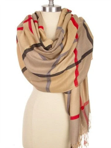 Burberry Inspired Classic Beige Window Pane Plaid Print Scarf